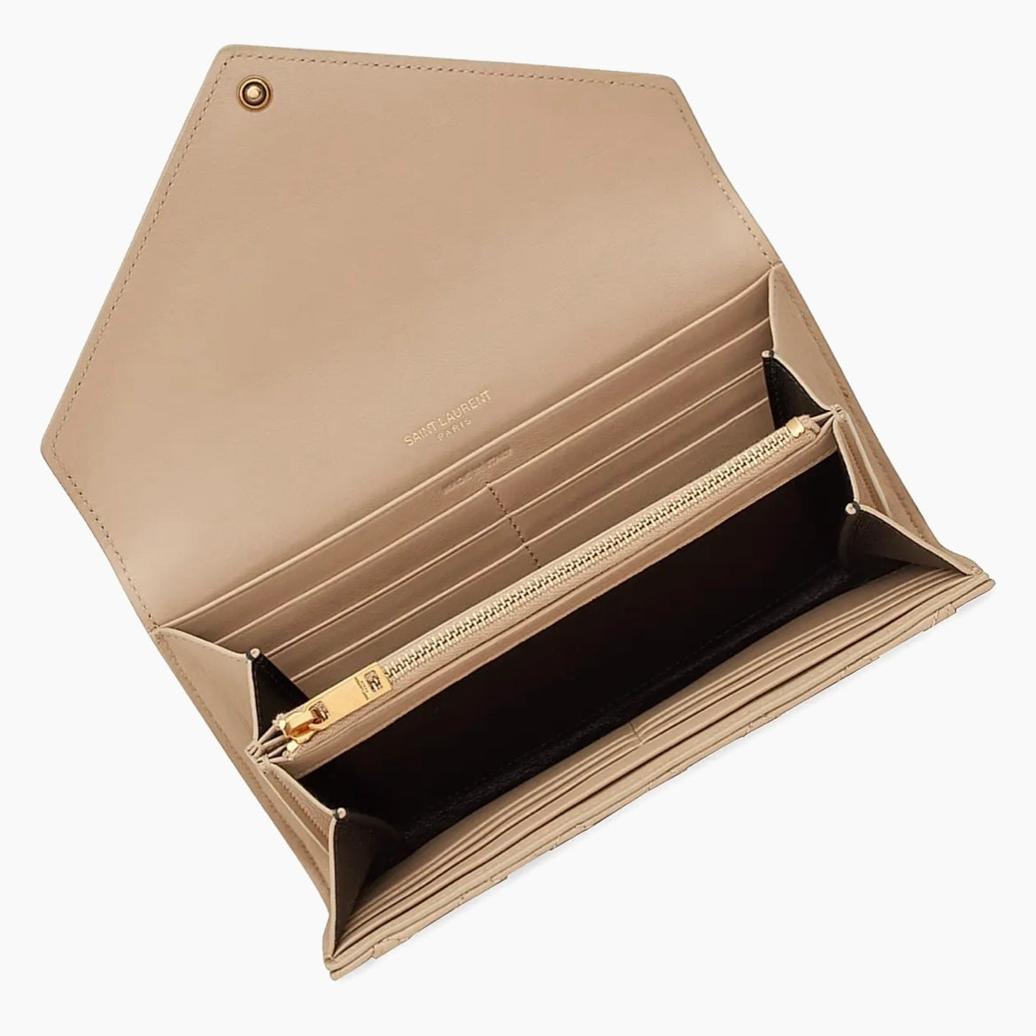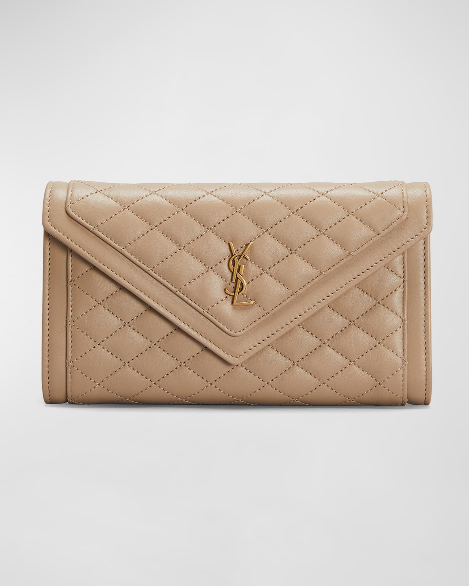 GABY LARGE YSL FLAP QUILT LAMBSKIN WALLET IN DARK BEIGE