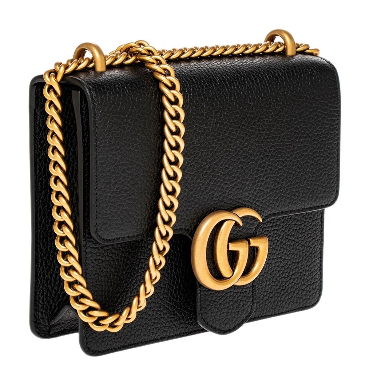 GUCCI Calfskin Small GG Marmont Chain Shoulder Bag Black
